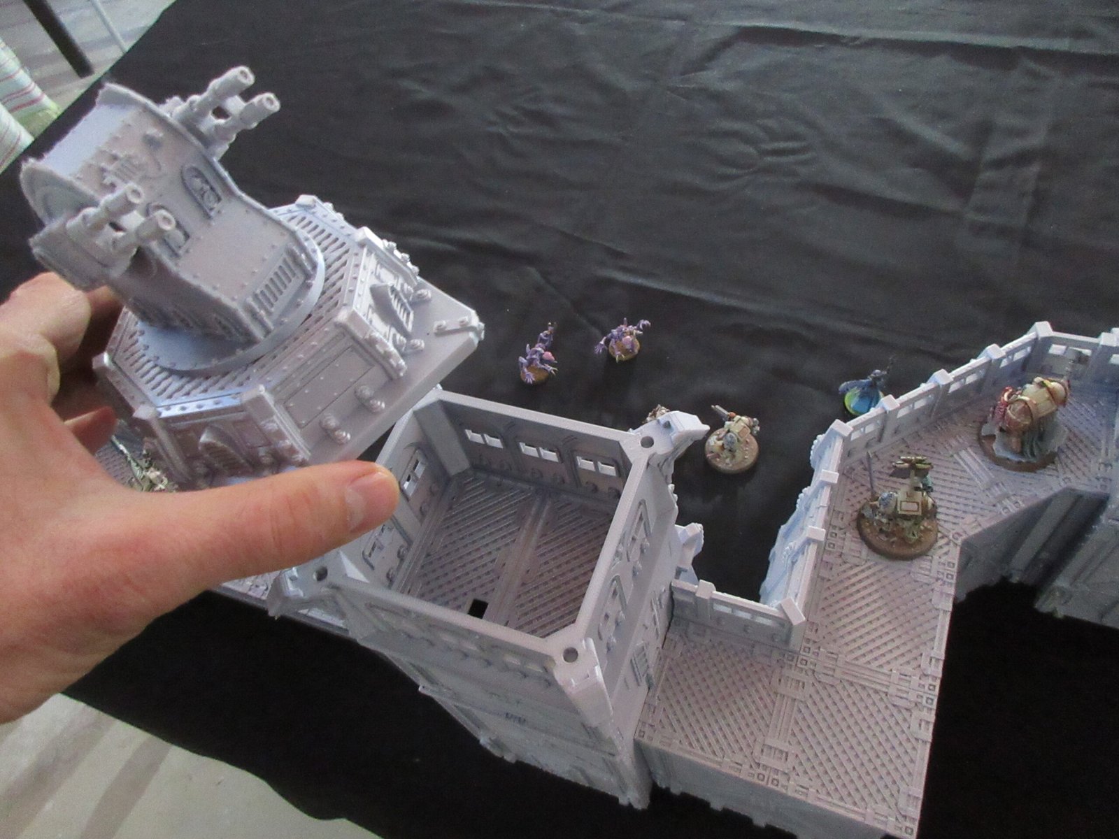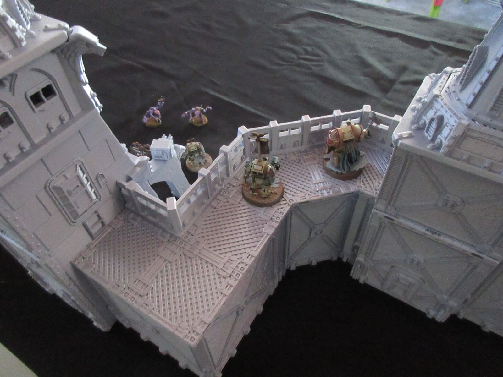 Les figurines Warhammer 40k de Games Workshop sont présentes pour indiquer l’échelle des décors.