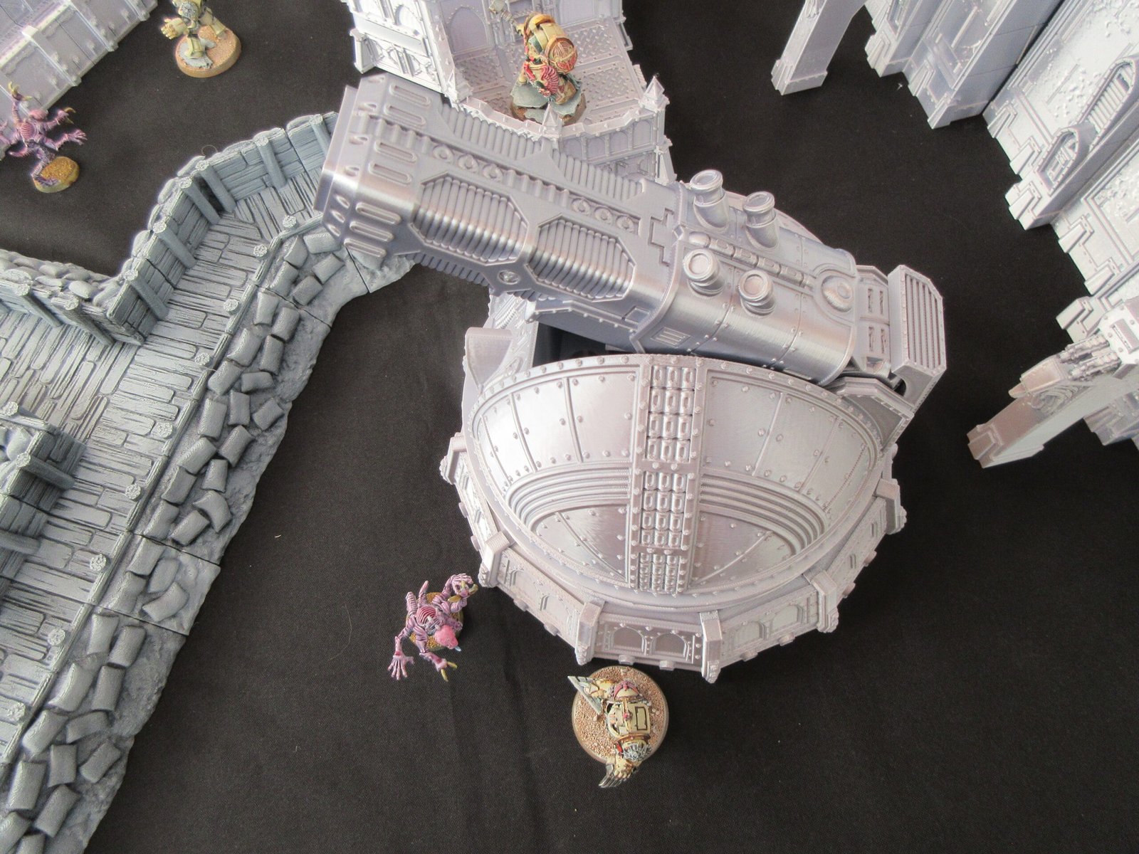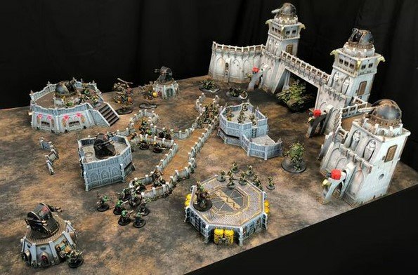 Les figurines Warhammer 40k de Games Workshop sont présentes pour indiquer l’échelle des décors.